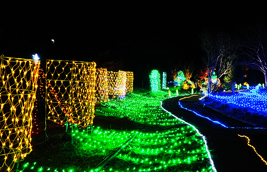 平安女学院コラボレーションの作品を過ぎると、ききょう灯りの庭が広がっています。